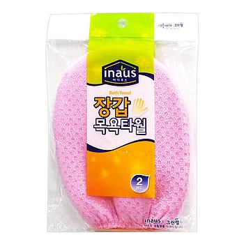 Мочалка-варежка для тела Clean Wrap с подкладом на резинке Inaus (жёсткая, массажная) размер: 12 х 17 см, 2 шт.