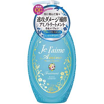 Шампунь для поврежденных волос с аминокислотами Гладкость и увлажнение KOSE COSMEPORT Je l'aime Amino, цветочно-травяной аромат, диспенсер 500 мл.