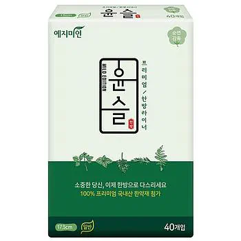 Ежедневные гигиенические прокладки Yejimiin премиум класса с усиленным впитывающим слоем, поверхностью из хлопка и натуральными экстрактами трав (без крылышек / 17,5 см) 40 шт