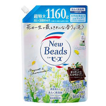 Концентрированный гель для стирки с кондиционером KAO New Beads (дезодорирующий, с ароматом ландыша и ромашки): смесь прекрасных ароматов, чисто стирает, содержит натуральную эссенцию свежих цветов. Прекрасная белизна. Освежающий дезодоратор. Выполаскивается с первого раза. Также может использоваться в стиральных машинах барабанного типа.