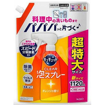 Средство для мытья посуды KAO CuCute Clear (с ароматом апельсина / пена-спрей для мытья без губки), запасной блок, 1120 мл