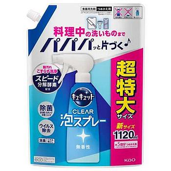 Средство для мытья посуды KAO CuCute Clear (без аромата / пена-спрей для мытья без губки), запасной блок, 1120 мл