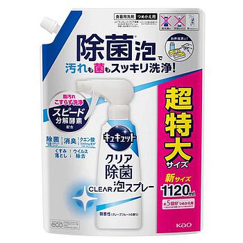 Средство для мытья посуды KAO CuCute Clear (с лимонной кислотой и ароматом грейпфрута / пена-спрей для мытья без губки), запасной блок, 1120 мл