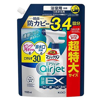 Пенящееся чистящее и дезодорирующее средство KAO MagicClean Airjet EX для ванной: антибактериальный чистящий спрей экспресс-действия для ванной комнаты. Всего за 30 секунд удаляет известковый и мыльный налёт, нужно только слегка смочить ванну и нанести средство, немного выдержать и смыть. Средство обладает свежим ароматом трав.