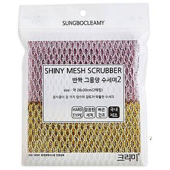 Мочалка-сетка Sung Bo Cleamy для мытья посуды и кухонных поверхностей с серебристой полипропиленовой нитью (средней жёсткости)(28 х 30 см) х 2 шт