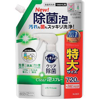 Средство для мытья посуды KAO CuCute Clear (с лимонной кислотой и ароматом лимона и лайма / пена-спрей для мытья без губки), запасной блок 720 мл