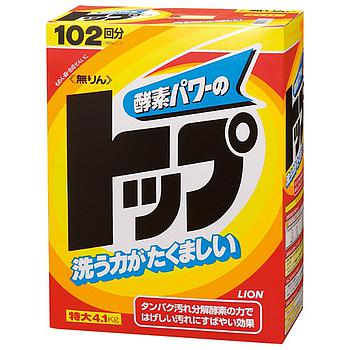 Стиральный порошок Lion "Top" содержит ферменты, которые разлагают трудновыводимые пятна белкового происхождения даже в холодной воде. Кроме того, входящее в состав данного средства EAA (средство, стимулирующее активность ферментов) блокирует содержащийся в водопроводной воде хлор, который мешает работе ферментов. Это повышает эффективность их действия.