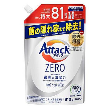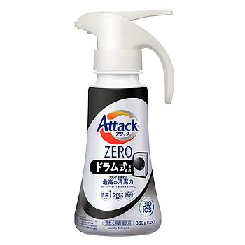 Жидкое средство для стирки KAO Attack ZERO создано по технологии устранения запахов при сушке в помещении. Устраняет запах сухости помещения. Удаляет очаги бактерий. Профилактика плесени в моечном баке стиральной машины. Не содержит оптического отбеливателя. Кроме того, оно содержит чистящий ингредиент Bio-IOS, целью которого является достижение как «высокой очищающей способности», так и «экологичности».