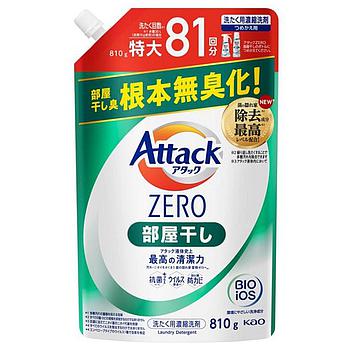 Жидкое средство для стирки KAO Attack ZERO (суперконцентрат, с защитой от неприятных запахов при сушке в помещении), запасной блок 810 гр