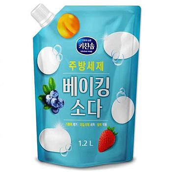 Нежное дезодорирующее средство для мытья посуды, овощей, фруктов и кухонной утвари с пищевой содой.