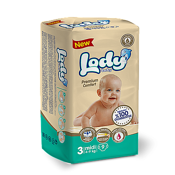 Подгузники для детей LODY BABY MIDI (4-9 кг) 9 шт
