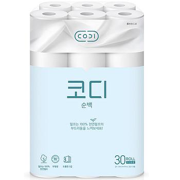 CODI LUXE - премиальная воздушная особомягкая 3-х слойная туалетная бумага с тиснением, 30 рулонов по 30 м.