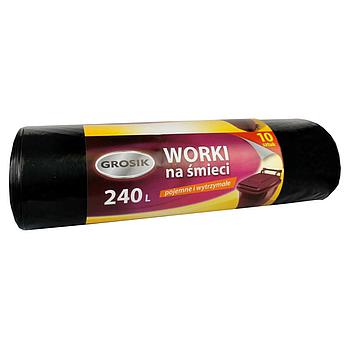 - Мешки для мусора. Они предназначены для бытовых отходов. Данные мешки удобно размещать в ведре, нужно лишь выбрать подходящий объём. Материал отличается прочностью, поэтому он редко рвётся. Существуют мешки с завязками, что упрощает вынос мусора.