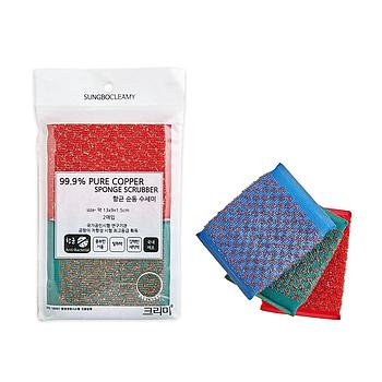 Губка Sung Bo Cleamy для мытья кастрюль и сковород с медной металлической нитью (жёсткая) (13 х 9 х 1,5 см) х 2 шт
