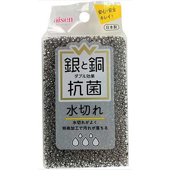 Губка для мытья посуды AISEN KOUGYOU из поролона в сетке с аллюминиевым покрытием, антибактериальная, 1 шт.