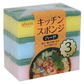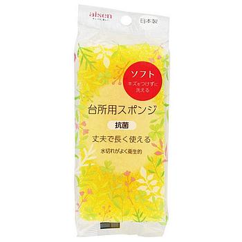 Губка для мытья посуды AISEN KOUGYOU BIOSIL из поролона с антибактериальной обработкой, абразивная, 3 шт