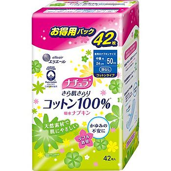 Супер-впитывающие ежедневные прокладки DAIO Elle AIR для обильных выделений с поверхностью из хлопка (Супер) 24 см, 42 шт.