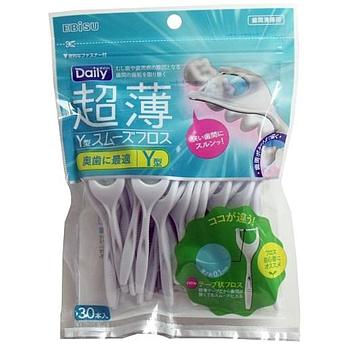 Флоссер с ЛЕНТОЧНОЙ зубной нитью EBISU на короткой Y-образной ручке 30 шт