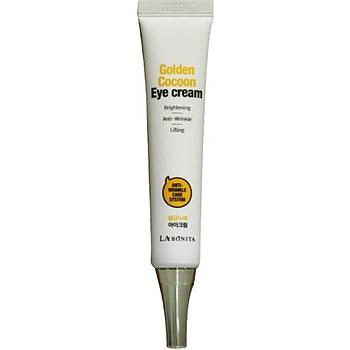 Labonita Golden Cocoon Eye Cream – это антивозрастной омолаживающий лифтинг крем для кожи вокруг глаз на основе золотого кокона шелкопряда и растительных экстрактов 5 трав. Крем для век на основе золотого кокона шелкопряда напитывает кожу полезными веществами- аминокислотами, протеинами и микроэлементами. В результате кожа гладкая, нежная, ровная, поры сужаются, морщины разглаживаются. Крем на основе золотого кокона шелкопряда отлично повышает упругость и эластичность кожи, длительно сохраняет влагу в коже, кожа долго остаётся увлажнённой, оказывает защитное действие на кожу, разглаживает морщины, омолаживает и подтягивает кожу, выравнивает тон кожи, осветляет кожу, оказывает профилактическое действие от пигментных пятен. Коконы тутового шелкопряда содержат два основных белка - фиброин и серицин, которые вместе образуют шелковое волокно. Эти белки невероятно богаты аминокислотами, которые так нужны нам для продления молодости кожи. Благодаря низкой молекулярной массе аминокислоты шелка легко и глубоко проникают в кожу, быстро впитываются и заполняют неровности на коже, разглаживают морщины и сужают поры. Серицин великолепно удерживает влагу, насыщает ткани кислородом, омолаживает кожу и обновляет кожу, восстанавливает утраченную эластичность и подтягивает. Серицин успокаивающе действует на аллергическую, гиперчувствительную кожу, склонную к раздражениям. Серицин также подавляет выработку меланина, вызывающего пигментацию кожи, выравнивает тон кожи, осветляет пигментные пятна. Растительный комплекс крема включает экстракты лаванды, розмарина, тимьяна, орегано, фенхеля.