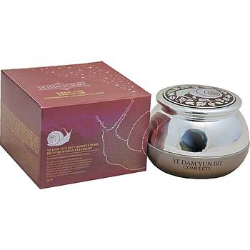 Антивозрастной восстанавливающий крем для кожи вокруг глаз YEDAM YUN BIT с муцином улитки и экстрактами женьшеня, камелии, моркови, хризантемы и фитоплаценты. Крем содержит улиточный муцин, фитостволовые клетки и комплекс 6 (экстракт женьшеня, хризантемы, моркови, маша (бобы "мунг"), зеленого чая и бамбука). Крем балансирует и восстанавливает оптимальный гидро-липидный баланс кожи. Улиточный муцин предохраняет кожу от воздействия солнца и останавливает процесс увядания клеток, благодаря антиоксидантам, уменьшает проявление морщин, выравнивает кожу, возвращает очарование юности; стволовые клетки растений + complex 6 особенный элемент, который увеличивает возможности кожи потреблять кислород; ускоряет обмен веществ; выводит из организма токсины, являющиеся причиной раннего старения; укрепляет, насыщает водой, создает незримый барьер, предохраняющий от негативного действия солнца и подрывающих здоровье дермы стрессов внешней среды, то есть гарантирует эффект омоложения; экстракты женьшеня, моркови, хризантемы, бобов «мунг», том,зирующего зеленого чая и бамбука содержат аминокислоты, витамины, минералы обеспечивающие коже бесценное увлажнение и питание; успокаивают раздраженную кожу, укрепляя ее защитный фильтр; излечивают проблемные зоны, контролируют уровень жирности, уменьшают поры, дарят влагу и питают. Крем имеет легкую текстуру, мгновенно впитывается, без ощущения тяжести, жирности и липкости.