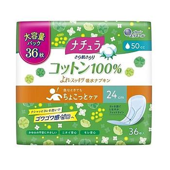 Женские ежедневные прокладки (0,35 см) с поверхностью из 100% хлопка. Натуральная поверхность защищает от зуда и раздражения. Предназначена для женщин, страдающих от ежедневных обильных выделений: при средней степени инконтиненции (недержания мочи) при резких или внезапных движениях, чихании и кашле, а также при воспалительных процессах, во время беременности, после родов, в период менопаузы. Прокладка постепенно впитывает влагу (до 50 мл) и мягко воздействует на кожу. Обновлённый рельеф с бороздами посередине обеспечивает стекание жидкости в центр. Высокие боковые клапаны по всей длине предотвращают протекание. Прокладка надёжно крепится к белью, сохраняет форму при активных движениях. Абсорбирующий гель впитывает жидкость и удерживает запахи внутри, экстракт зелёного чая обеспечивает дополнительную дезодорацию и надёжно блокирует неприятные запахи мочи и пота.