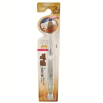 Зубная щетка с ионами золота и двухуровневой щетиной. Тонкие супермягкие заостренные верхние щетинки толщиной до 0,1 мм глубоко проникают в труднодоступные для обычных зубных щеток промежутки между зубами. Закругленные мягкие нижние щетинки средней жесткости прекрасно очищают зубную эмаль, не повреждая ее. Благодаря чистке зубов такой щеткой улучшается кровообращение, массируются десны, повышается стойкость полости рта к инфекциям. Щетка способствует долговременному сохранению ощущения чистоты и свежести; предотвращает травмирование тканей пародонта и слизистой оболочки полости рта в процессе чистки зубов. Рекомендовано для людей с чувствительными деснами и зубами.