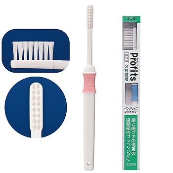 EBISU - Profits - зубная щётка с СУПЕРУЗКОЙ чистящей головкой ПЛОСКИМ срезом и скруглёнными щетинками (для гигиены пришеечной области, средняя жёсткость).