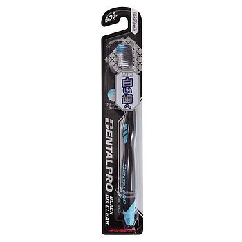 Зубная щётка DENTALPRO многоуровневая с ультратонкой щетиной алмазной формы и резиновыми щетинками, с компактной головкой, средней жесткости, — специальные черные щетинки и фтористые щетинки ромбовидной формы, уникальные для серии Black Diamond, эффективно удаляют пятна с зубов, а чистящие резиновые щетинки в центре тщательно удаляют небольшие бороздки и цветные пятна, восстанавливая первоначальную белизну зубов.