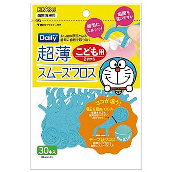 Детский флоссер с ЛЕНТОЧНОЙ зубной нитью на плоской ручке EBISU (с 2 лет) 30 шт