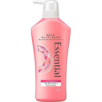 Кондиционер Essential предназначен для сухих и повреждённых волос, разглаживает кутикулу. Средство позволяет подготовить волосы к термоукладке утюжками, плойкой, гофрой, а также укладке на щетку с феном, для того чтобы минимизировать волосам повреждения кутикулы от термонагрева (технология «Thermal Styling Technology» — ТST). Кондиционер содержит яблочную и янтарные кислоты, а также подсолнечное масло и ланолин, восстанавливает липидный защитный слой волос и в целом кутикулу, минимизируя ее повреждения в дальнейшем от воздействия высоких температур. Придает волосам здоровый блеск и приятный аромат свежих цветов. Эффективен при совместном применении с шампунем Kao Essential.