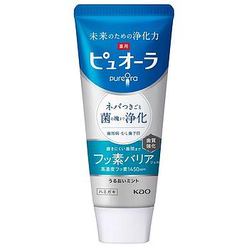 Зубная паста KAO PureOra: долгосрочное вложение в здоровье зубов и дёсен и фторный барьер! Гелевая паста проникает в труднодоступные межзубные промежутки. Фтор высокой концентрации (1450 ppm) создаёт барьер, восстанавливающий эмаль и защищающий от кариеса. Чистящий компонент эритрит легко расщепляет вязкий налёт и тщательно очищает полость рта. Антибактериальный компонент CPC и противовоспалительный компонент BGA удаляют патогенные бактерии, предотвращают их повторный рост, защищают от развития заболеваний пародонта (пародонтита, гингивита) и возникновения неприятного запаха.