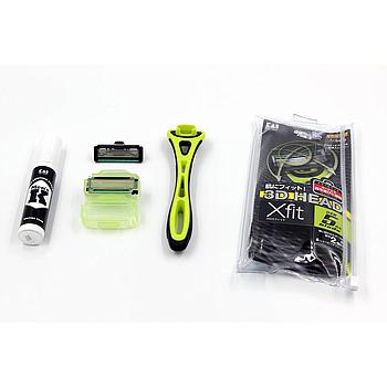 Мужской дорожный набор (бритвенный станок KAI Xfit, пена для бритья) (+ 4 сменных лезвия + пена 12 гр. + чехол с молнией), 1 шт.