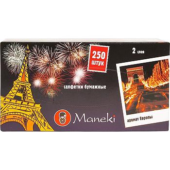 Салфетки бумажные Maneki, серия Dream с ароматом Европы, 2 слоя, белые, 250 шт./коробка