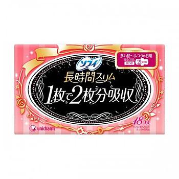 Тонкие супервпитывающие гигиенические прокладки UNICHARM Sofy Normal 21 см, с крылышками, пачка 18 шт.