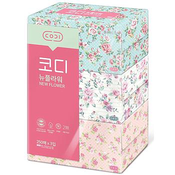 Двухслойные мягкие бумажные салфетки Ssangyong C&B Розы 250 шт. х 3 уп