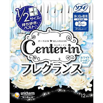 Ночные гигиенические прокладки с ароматом садовых цветов UNICHARM Center-in Compact, Normal 30 см, с крылышками, пачка 12 шт.