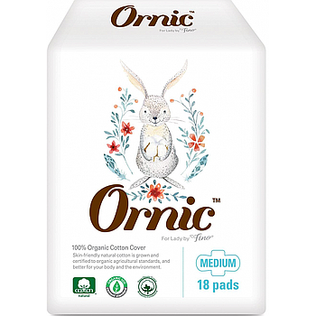 Классические тонкие гигиенические прокладки OrnicFino Medium (с крылышками (Стандарт) 25 см, 18 шт.)