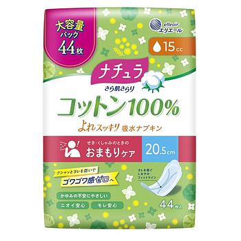 Женские ежедневные прокладки (0,35 см) с поверхностью из 100% хлопка. Натуральная поверхность защищает от зуда и раздражения. Предназначена для женщин, страдающих от ежедневных обильных выделений: при средней степени инконтиненции (недержания мочи) при резких или внезапных движениях, чихании и кашле, а также при воспалительных процессах, во время беременности, после родов, в период менопаузы. Прокладка постепенно впитывает влагу (до 30 мл) и мягко воздействует на кожу. Обновлённый рельеф с бороздами посередине обеспечивает стекание жидкости в центр. Высокие боковые клапаны по всей длине предотвращают протекание. Прокладка надёжно крепится к белью, сохраняет форму при активных движениях. Абсорбирующий гель впитывает жидкость и удерживает запахи внутри, экстракт зелёного чая обеспечивает дополнительную дезодорацию и надёжно блокирует неприятные запахи мочи и пота.