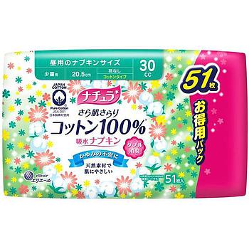 Супер-впитывающие ежедневные тонкие прокладки DAIO для обильных выделений с поверхностью из хлопка (Макси) 20,5 см, 51 шт
