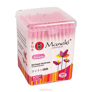 4. Палочки ватные гигиенические Maneki Lovely, с розовым бумажным стиком.