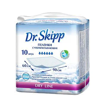 2. Пеленки для детей впитывающие DR.SKIPP DRY LINE. У этих изделий размер 60х90, они смогут впитывать где-то 1300 мл жидкости.