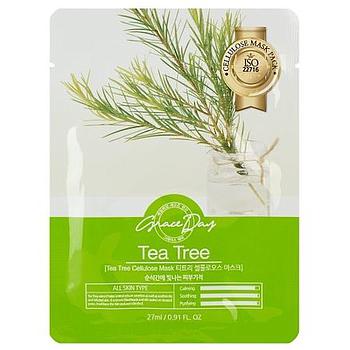 Маска тканевая GRACE DAY из натуральной целлюлозы с экстрактом листьев чайного дерева, для всех типов кожи, 27 мл