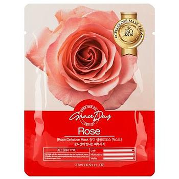 Маска тканевая GRACE DAY из натуральной целлюлозы с экстрактом лепестков розы, для всех типов кожи, 27 мл