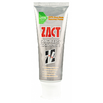 Зубная паста для курящих с отбеливающим эффектом Zact Cool LION в состав которой входят очищающие и полирующие компоненты (вторичнокислый фосфат кальция и оксид алюминия) эффективно удаляет никотиновый налёт с поверхности зубов, темный налет от кофе и чая, возвращая зубам их природную белизну.