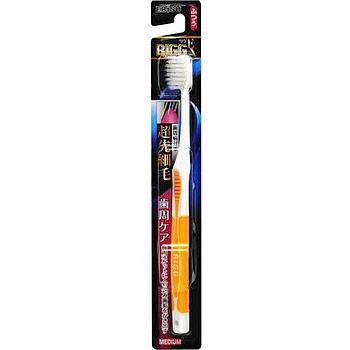 Премиальная щётка для качественной чистки! Три слагаемых для эффективной гигиены: 1. широкое и тонкое основание головки (3 мм) для глубокого проникновения и максимального охвата поверхности коренных зубов. 2. щетинки с острыми и закруглёнными кончиками для тщательного очищения зубно-десённого кармана, куда не достают щетинки обычной формы. Комбинированная щетина эффективно удаляет зубной налёт и остатки пищи в труднодоступных местах. 3. тонкая шейка и утолщённая эргономичная ручка для удобной чистки. Щётка не оказывает травмирующего воздействия на дёсны.