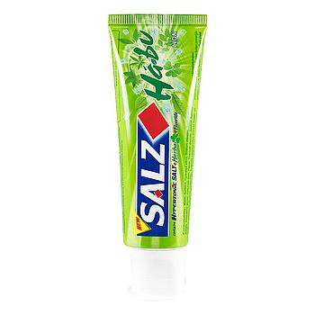 Зубная паста с солью заботится о здоровом состоянии эмали зубов, помогает защищать ее поврежденную поверхность, нейтрализует кислотность в полости рта, тем самым снижая их чувствительность. Зубная паста создает защитный слой на поверхности зубов. Предотвращает заболевание десен, развитие кариеса, зубного камня. Зубная паста освежает дыхание и поддерживает чистоту полости рта.