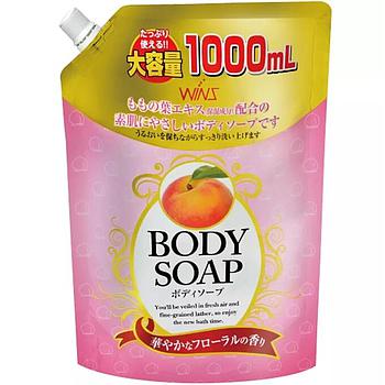 Крем-мыло для тела NIHON Wins Body Soap peach с экстрактом листьев персика и богатым ароматом запасной блок с крышкой 1 л
