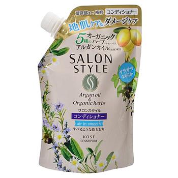 Кондиционер Kose "Salon Style" предназначен для ухода за кожей головы и восстановления структуры волос. Кондиционер с аргановым маслом и растительными экстрактами для тонких мягких волос. Делает поврежденные тонкие волосы упругими и эластичными. Увеличивает объем прически, облегчает расчесывание и укладку. В составе натуральные растительные компоненты: аргановое масло, а также органические масла оливы, сафлоры и жожоба для дополнительного увлажнения и блеска волос. В основе рецептуры кондиционера — вода из минеральных источников, которая содержит комплекс минеральных веществ, укрепляющих и оздоравливающих волосы.