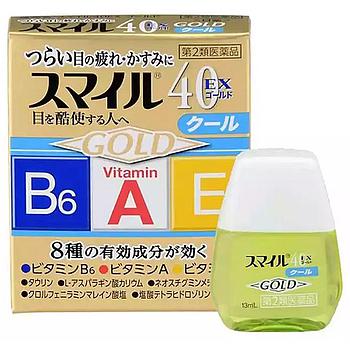 Капли Smile 40 EX Gold включают в себя комплекс из 8 активных компонентов для профилактики и поддержания здоровья зрения. Эти капли подходят для людей офисных профессий и тех, кто проводит много времени работая перед компьютером, или неестественном освещении кабинетных ламп, а также тех, кто работает со сварочным аппаратом (сварщики) или люди долго пребывающие за рулем, особенно в ночное время, пожилые люди, у которых нарушено питание глаз из-за возрастных изменений в организме. Имеют самый сильный освежающий эффект из всей линейки LION. В состав добавлено касторовое масло.