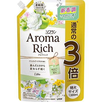 Японский кондиционер / ополаскиватель для белья Aroma Rich Ellie (Арома Рич Элли) с ароматом зелёного яблока, груши и персика с нотами розы, ландыша, жасмина и бархатной глубиной ванили, мускуса и кедра - один из лучших современных кондиционеров, очень экономичный (концентрат), эко, с богатым ароматом эфирных масел, который остается на белье в течение долгого времени.